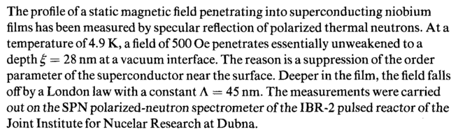 The profile of a static magnetic field penetrating into superconducting niobium films has been measured by specular reflection of polarized thermal neutrons. At a temperature of 4.9 K, a field of 500 Oe penetrates essentially unweakened to a depth ξ = 28 nm at a vacuum interface. The reason is a suppression of the order parameter of the superconductor near the surface. Deeper in the film, the field falls off by a London law with a constant Λ = 45 nm. The measurements were carried out on the SPN polarized-neutron spectrometer of the IBR-2 pulsed reactor of the Joint Institute for Nucelar Research at Dubna.