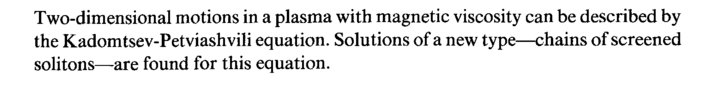 Two-dimensional motions in a plasma with magnetic viscosity can be described by the Kadomtsev-Petviashvili equation. Solutions of a new type—chains of screened solitons—are found for this equation.