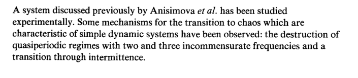 A system discussed previously by Anisimova et al. has been studied experimentally. Some mechanisms for the transition to chaos which are characteristic of simple dynamic systems have been observed: the destruction of quasiperiodic regimes with two and three incommensurate frequencies and a transition through intermittence.