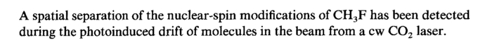 A spatial separation of the nuclear-spin modifications of CH3F has been detected during the photoinduced drift of molecules in the beam from a cw C02 laser.