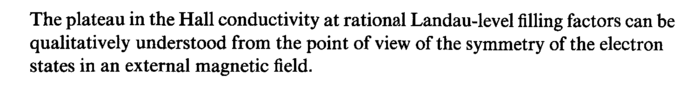 The plateau in the Hall conductivity at rational Landau-level filling factors can be qualitatively understood from the point of view of the symmetry of the electron states in an external magnetic field.