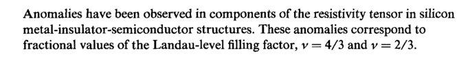 Anomalies have been observed in components of the resistivity tensor in silicon metal-insulator-semiconductor structures. These anomalies correspond to fractional values of the Landau-level filling factor, ν = 4/3 and ν = 2/3.