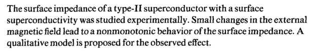 The surface impedance of a type-II superconductor with a surface superconductivity was studied experimentally. Small changes in the external magnetic field lead to a nonmonotonic behavior of the surface impedance. A qualitative model is proposed for the observed effect.