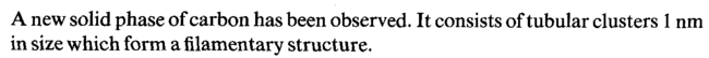 A new solid phase of carbon has been observed. It consists of tubular clusters 1 nm in size which form a filamentary structure.