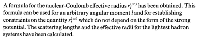 A formula for the nuclear-Coulomb effective radius ήχ1 has been obtained. This formula can be used for an arbitrary angular moment / and for establishing constraints on the quantity rjcs) which do not depend on the form of the strong potential. The scattering lengths and the effective radii for the lightest hadron systems have been calculated.
