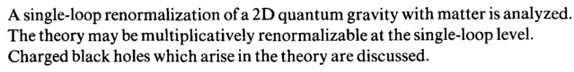 A single-loop renormalization of a 2D quantum gravity with matter is analyzed. The theory may be multiplicatively renormalizable at the single-loop level. Charged black holes which arise in the theory are discussed.