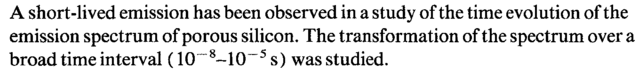 A short-lived emission has been observed in a study of the time evolution of the emission spectrum of porous silicon. The transformation of the spectrum over a broad time interval (10~8--10"~5s) was studied.