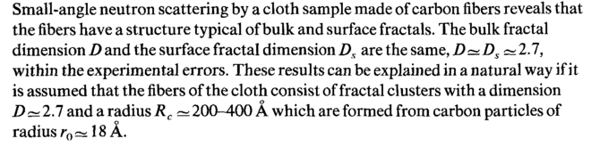 Small-angle neutron scattering by a cloth sample made of carbon fibers reveals that the fibers have a structure typical of bulk and surface fractals. The bulk fractal dimension D and the surface fractal dimension Ds are the same, D~DS~2J, within the experimental errors. These results can be explained in a natural way if it is assumed that the fibers of the cloth consist of fractal clusters with a dimension о D ~ 2.7 and a radius Rc ~ 200-400 A which are formed from carbon particles of о radius r0~ 18 A.