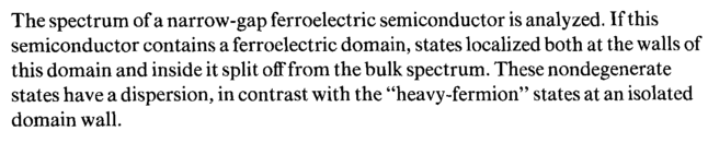 The spectrum of a narrow-gap ferroelectric semiconductor is analyzed. If this semiconductor contains a ferroelectric domain, states localized both at the walls of this domain and inside it split offfrom the bulk spectrum. These nondegenerate states have a dispersion, in contrast with the "heavy-fermion" states at an isolated domain wall.