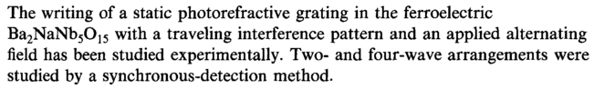 The writing of a static photorefractive grating in the ferroelectric Ba2NaNb50]5 with a traveling interference pattern and an applied alternating field has been studied experimentally. Twoand four-wave arrangements were studied by a synchronous-detection method.