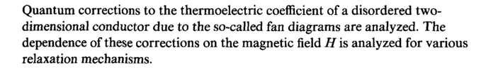 Quantum corrections to the thermoelectric coefficient of a disordered two-dimensional conductor due to the so-called fan diagrams are analyzed. The dependence of these corrections on the magnetic field Η is analyzed for various relaxation mechanisms.
