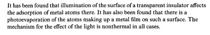 It has been found that illumination of the surface of a transparent insulator affects the adsorption of metal atoms there. It has also been found that there is a photoevaporation of the atoms making up a metal film on such a surface. The mechanism for the effect of the light is nonthermal in all cases.