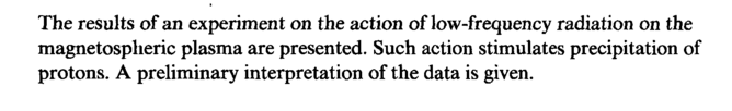 The results of an experiment on the action of low-frequency radiation on the rnagnetospheric plasma are presented. Such action stimulates precipitation of protons. A preliminary interpretation of the data is given.