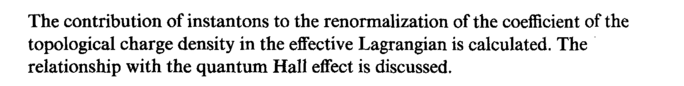 The contribution of instantons to the renormalization of the coefficient of the topological charge density in the effective Lagrangian is calculated. The relationship with the quantum Hall effect is discussed.