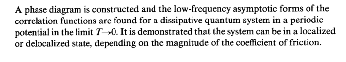 A phase diagram is constructed and the low-frequency asymptotic forms of the correlation functions are found for a dissipative quantum system in a periodic potential in the limit Γ—>0. It is demonstrated that the system can be in a localized or delocalized state, depending on the magnitude of the coefficient of friction.