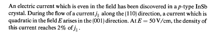 Current in p-InSb which is even in the electric field
