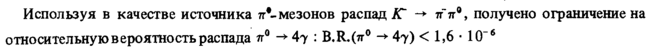 Используя в качестве источника π*-мезонов распад JC -+ π π9, получено ограничение на относи тельную вероятность распада п° -*■ 4у : В,Я.(я0 -* 4у) < 1,6 ■ 10"6