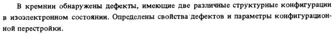В кремнии обнаружены дефекты, имеющие две различные структурные конфигурации в изоэлектронном состоянии. Определены свойства дефектов и параметры конфигурационной перестройки.