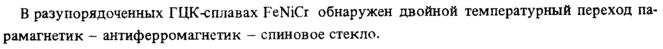 В разупорядоченных ГЦК-сплавах FeNiCr обнаружен двойной температурный переход парамагнетик антиферромагнетик — спиновое стекло.