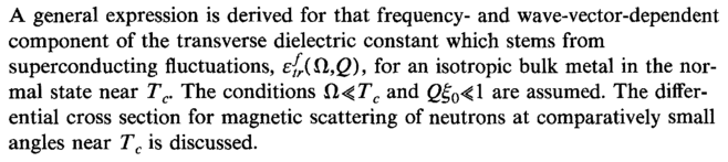 A general expression is derived for that frequencyand wave-vector-dependent component of the transverse dielectric constant which stems from superconducting fluctuations, e{r(Q,,Q), for an isotropic bulk metal in the normal state near Tc. The conditions fl<Tc and ζ)ξΰ<\ are assumed. The differential cross section for magnetic scattering of neutrons at comparatively small angles near Tc is discussed.