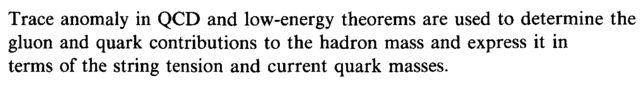 Trace anomaly in QCD and low-energy theorems are used to determine the gluon and quark contributions to the hadron mass and express it in terms of the string tension and current quark masses.