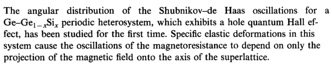 The angular distribution of the Shubnikov-de Haas oscillations for a Ge-Ge^^Si^ periodic heterosystem, which exhibits a hole quantum Hall effect, has been studied for the first time. Specific elastic deformations in this system cause the oscillations of the magnetoresistance to depend on only the projection of the magnetic field onto the axis of the superlattice.