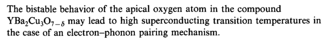 The bistable behavior of the apical oxygen atom in the compound YBa2Cu307_£ таУ lead to high superconducting transition temperatures in the case of an electron-phonon pairing mechanism.