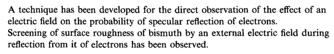 A technique has been developed for the direct observation of the effect of an electric field on the probability of specular reflection of electrons. Screening of surface roughness of bismuth by an external electric field during reflection from it of electrons has been observed.