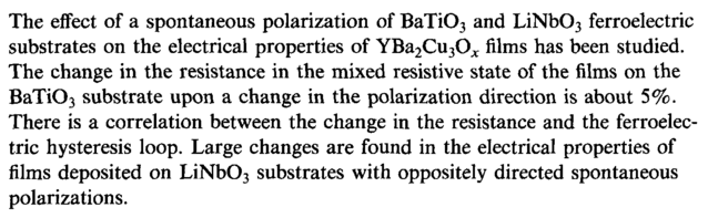 The effect of a spontaneous polarization of BaTi03 and LiNb03 ferroelectric substrates on the electrical properties of õ÷ÁÇó^ï^ films has been studied. The change in the resistance in the mixed resistive state of the films on the ÷Áôà3 substrate upon a change in the polarization direction is about 5%. There is a correlation between the change in the resistance and the ferroelectric hysteresis loop. Large changes are found in the electrical properties of films deposited on LiNb03 substrates with oppositely directed spontaneous polarizations.