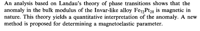 An analysis based on Landau's theory of phase transitions shows that the anomaly in the bulk modulus of the Invar-like alloy Fe72Pt28 is magnetic in nature. This theory yields a quantitative interpretation of the anomaly. A new method is proposed for determining a magnetoelastic parameter.