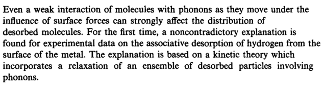 Even a weak interaction of molecules with phonons as they move under the influence of surface forces can strongly affect the distribution of desorbed molecules. For the first time, a noncontradictory explanation is found for experimental data on the associative desorption of hydrogen from the surface of the metal. The explanation is based on a kinetic theory which incorporates a relaxation of an ensemble of desorbed particles involving phonons.