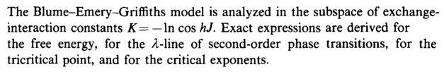 The Blume-Emery-Griffiths model is analyzed in the subspace of exchange-interaction constants K= — In cos hJ. Exact expressions are derived for the free energy, for the Λ-line of second-order phase transitions, for the tricritical point, and for the critical exponents.