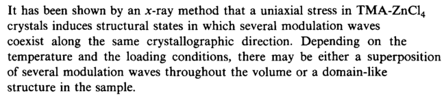 It has been shown by an x-ray method that a uniaxial stress in TMA-ZnCl4 crystals induces structural states in which several modulation waves coexist along the same crystallographic direction. Depending on the temperature and the loading conditions, there may be either a superposition of several modulation waves throughout the volume or a domain-like structure in the sample.