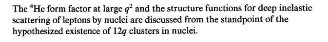 The 4He form factor at large q2 and the structure functions for deep inelastic scattering of leptons by nuclei are discussed from the standpoint of the hypothesized existence of I2q clusters in nuclei.