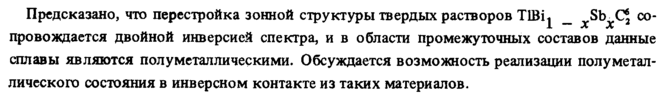 Предсказано, что перестройка зонной структуры твердых растворов ТШь _ Sb С* соX 1 X X провождается двойной инверсией спектра, и в области промежуточных составов данные сплавы являются пол у металлическими. Обсуждается возможность реализации полу металлического состояния в инверсном контакте из таких материалов.