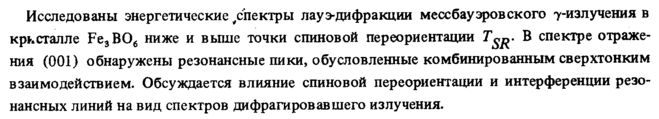 Исследованы энергетические ^спектры лауэ-дифракции мессбауэровского 7-излучения в крьсталле Fe3B06 ниже и выше точки спиновой переориентации 7^. В спектре отражения (001) обнаружены резонансные пики, обусловленные комбинированным сверхтонким взаимодействием. Обсуждается влияние спиновой переориентации и интерференции резонансных линий на вид спектров дифрагировавшего излучения.
