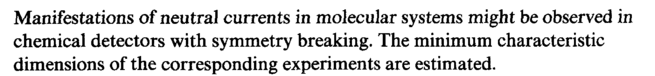 Manifestations of neutral currents in molecular systems might be observed in chemical detectors with symmetry breaking. The minimum characteristic dimensions of the corresponding experiments are estimated.