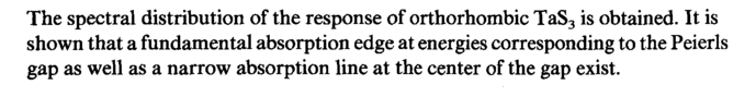 The spectral distribution of the response of orthorhombic TaS3 is obtained. It is shown that a fundamental absorption edge at energies corresponding to the Peierls gap as well as a narrow absorption line at the center of the gap exist.