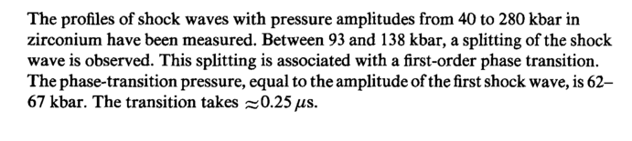 The profiles of shock waves with pressure amplitudes from 40 to 280 kbar in zirconium have been measured. Between 93 and 138 kbar, a splitting of the shock wave is observed. This splitting is associated with a first-order phase transition. The phase-transition pressure, equal to the amplitude of the first shock wave, is 62-67 kbar. The transition takes ~0.25 μβ.