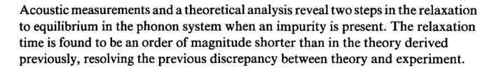 Acoustic measurements and a theoretical analysis reveal two steps in the relaxation to equilibrium in the phonon system when an impurity is present. The relaxation time is found to be an order of magnitude shorter than in the theory derived previously, resolving the previous discrepancy between theory and experiment.