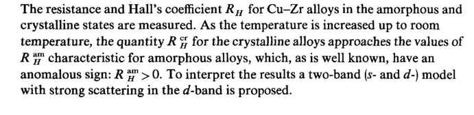 Hall's coefficient for Cu-Zr alloys with amorphous and crystalline structure