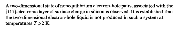 A two-dimensional state of nonequilibrium electron-hole pairs, associated with the [11 l]-electronic layer of surface charge in silicon is observed. It is established that the two-dimensional electron-hole liquid is not produced in such a system at temperatures Γ>2Κ.