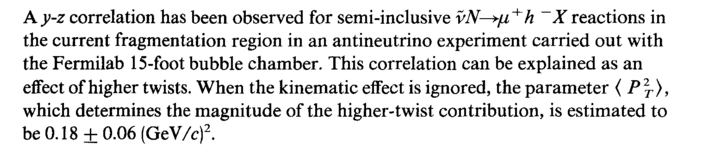 Ay-z correlation has been observed for semi-inclusive νΝ—^μ^Η ~X reactions in the current fragmentation region in an antineutrino experiment carried out with the Fermilab 15-foot bubble chamber. This correlation can be explained as an effect of higher twists. When the kinematic effect is ignored, the parameter (?2r), which determines the magnitude of the higher-twist contribution, is estimated to be 0.18 + 0.06 (GeV/c)2.