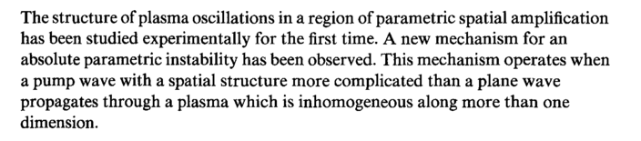 The structure of plasma oscillations in a region of parametric spatial amplification has been studied experimentally for the first time. A new mechanism for an absolute parametric instability has been observed. This mechanism operates when a pump wave with a spatial structure more complicated than a plane wave propagates through a plasma which is inhomogeneous along more than one dimension.