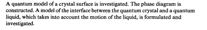 A quantum model of a crystal surface is investigated. The phase diagram is constructed. A model of the interface between the quantum crystal and a quantum liquid, which takes into account the motion of the liquid, is formulated and investigated.
