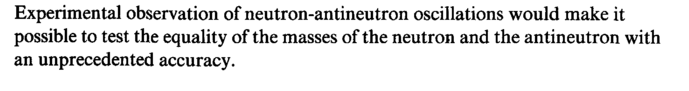Experimental observation of neutron-antineutron oscillations would make it possible to test the equality of the masses of the neutron and the antineutron with an unprecedented accuracy.