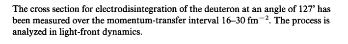 The cross section for electrodisintegration of the deuteron at an angle of 127° has been measured over the momentum-transfer interval 16-30 fm-2. The process is analyzed in light-front dynamics.