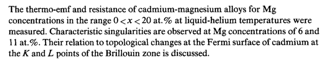 The thermo-emf and resistance of cadmium-magnesium alloys for Mg concentrations in the range 0 <x < 20 at.% at liquid-helium temperatures were measured. Characteristic singularities are observed at Mg concentrations of 6 and 11 at.%. Their relation to topological changes at the Fermi surface of cadmium at the К and L points of the Brillouin zone is discussed.