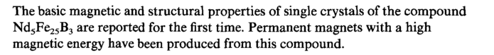 The basic magnetic and structural properties of single crystals of the compound Nd5Fe25B3 are reported for the first time. Permanent magnets with a high magnetic energy have been produced from this compound.