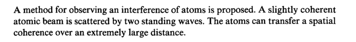 A method for observing an interference of atoms is proposed. A slightly coherent atomic beam is scattered by two standing waves. The atoms can transfer a spatial coherence over an extremely large distance.